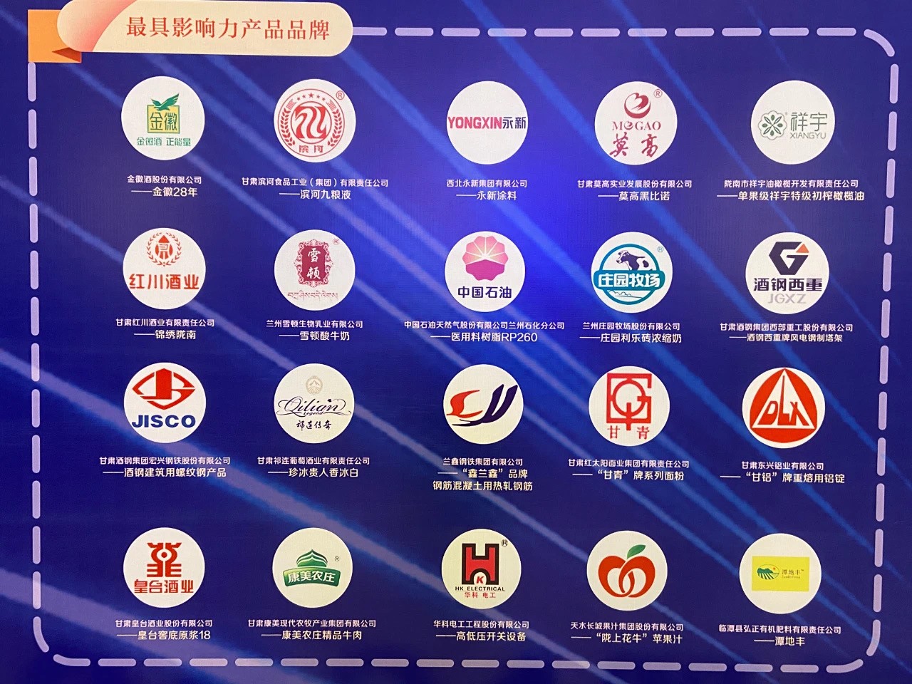 甘肅日報社、甘肅省質量協會主辦,推選活動中脫穎而出的有20個最具影響力企業(yè)品牌、10位品牌人物、